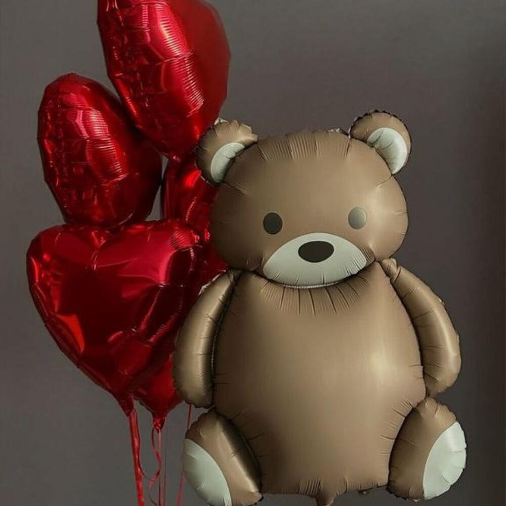 Bear foil balloon, 5 heart foil balloons