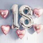 2 number foil balloons (can be changed, just leave comment with numbers you need), 5 heart foil balloons