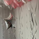 Big star balloon with text, 15 latex balloons under the ceiling