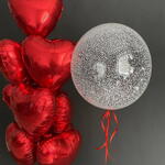Transparent big balloon (you can request any words on it), 10 foil hearts