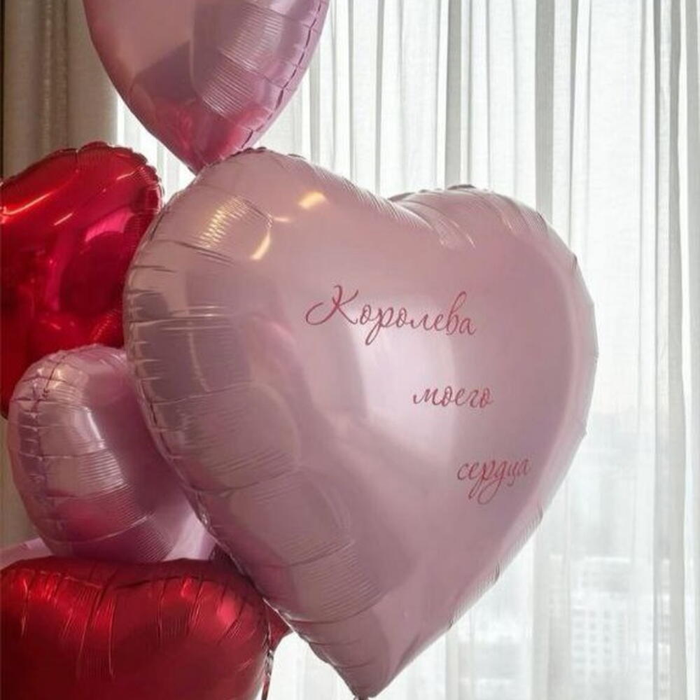 Big heart balloon with text, 5 smaller heart balloons