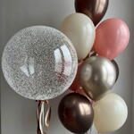Big transparent balloon, 10 latex balloons. Text is possible to be done on the transparent balloon.