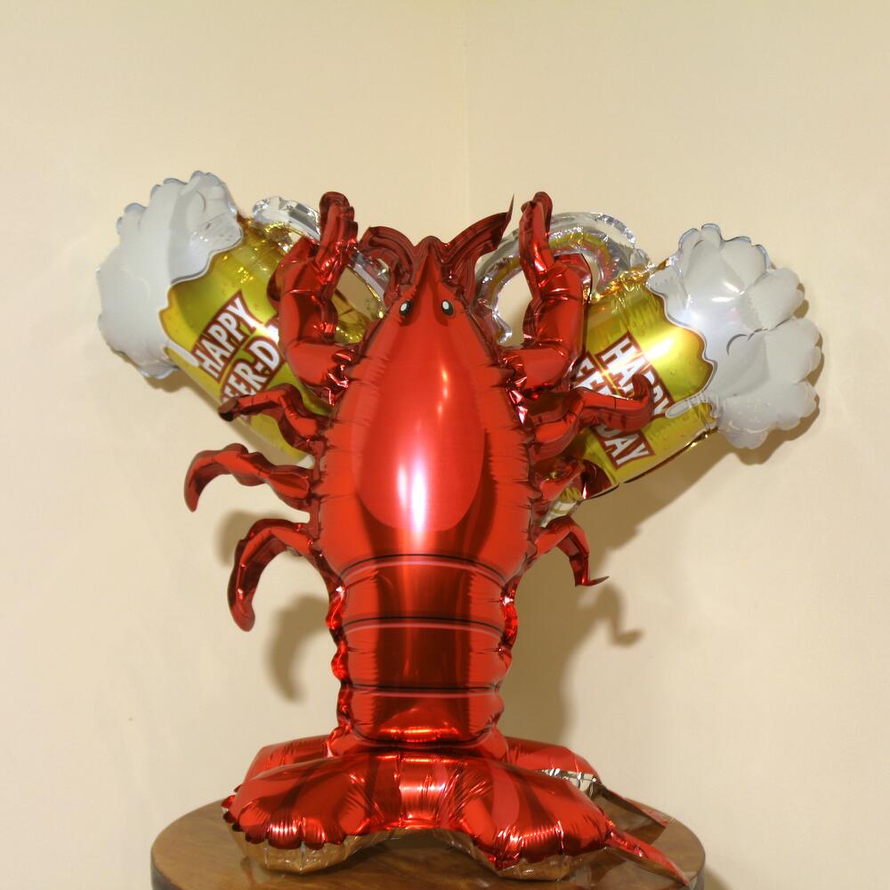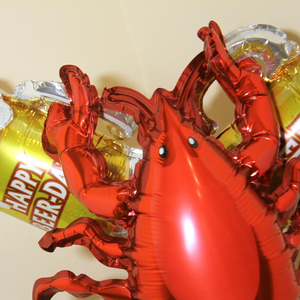 Стоячий шар размера 62*45 в виде красного рака, держащего в клешнях две кружки пива. Шары надуты воздухом, что обеспечивает долговечность, а также возможность поддува шара в будущем. Станет отличным подарком, как мужчине, так и женщине.