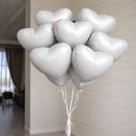 10 balloons in the set A beautiful set of helium heart balloons in white — perfect for romantic gifts, birthday surprises, wedding decorations, proposals, anniversaries, or Valentine’s Day. These floating heart-shaped balloons create a dreamy atmosphere for any celebration or photo shoot. Ideal for balloon delivery, romantic decor, or gifting someone special.