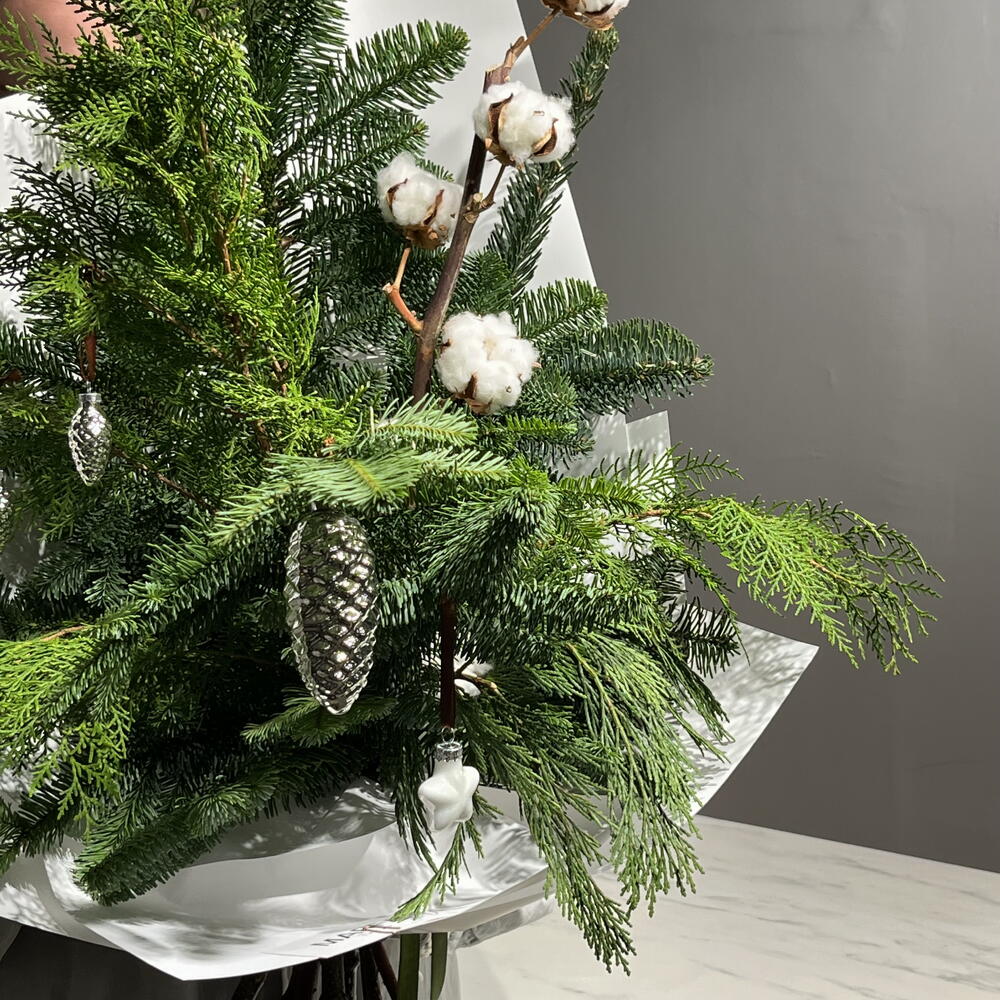 A fragrant spruce bundle with natural cotton. A very long-lasting bouquet that will stay fresh for over a month. A great gift option or a beautiful decoration for any space.