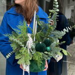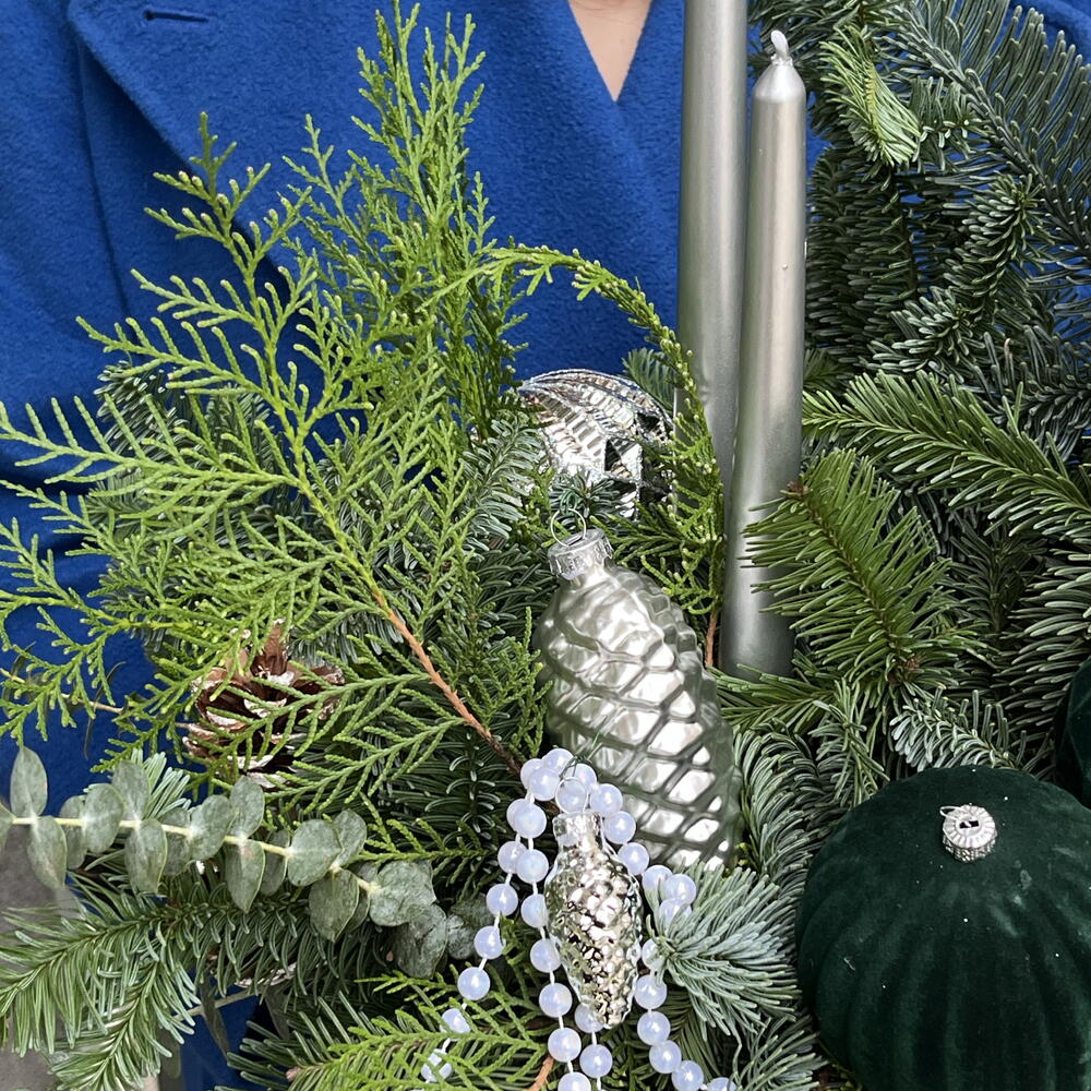 eukaliptusz - 2 db. Dekoráció - 10 db. nemes - 3 db. gyertyák - 2 db. tuya - 3 db.