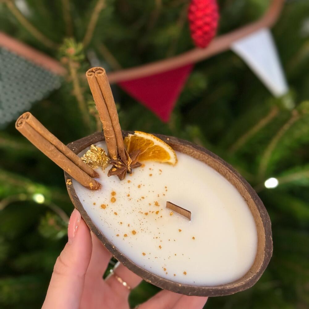The candle is decorated with Christmas decor You can choose a fragrance : - Maple pecans - Caramel pear