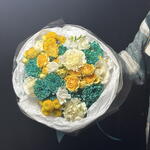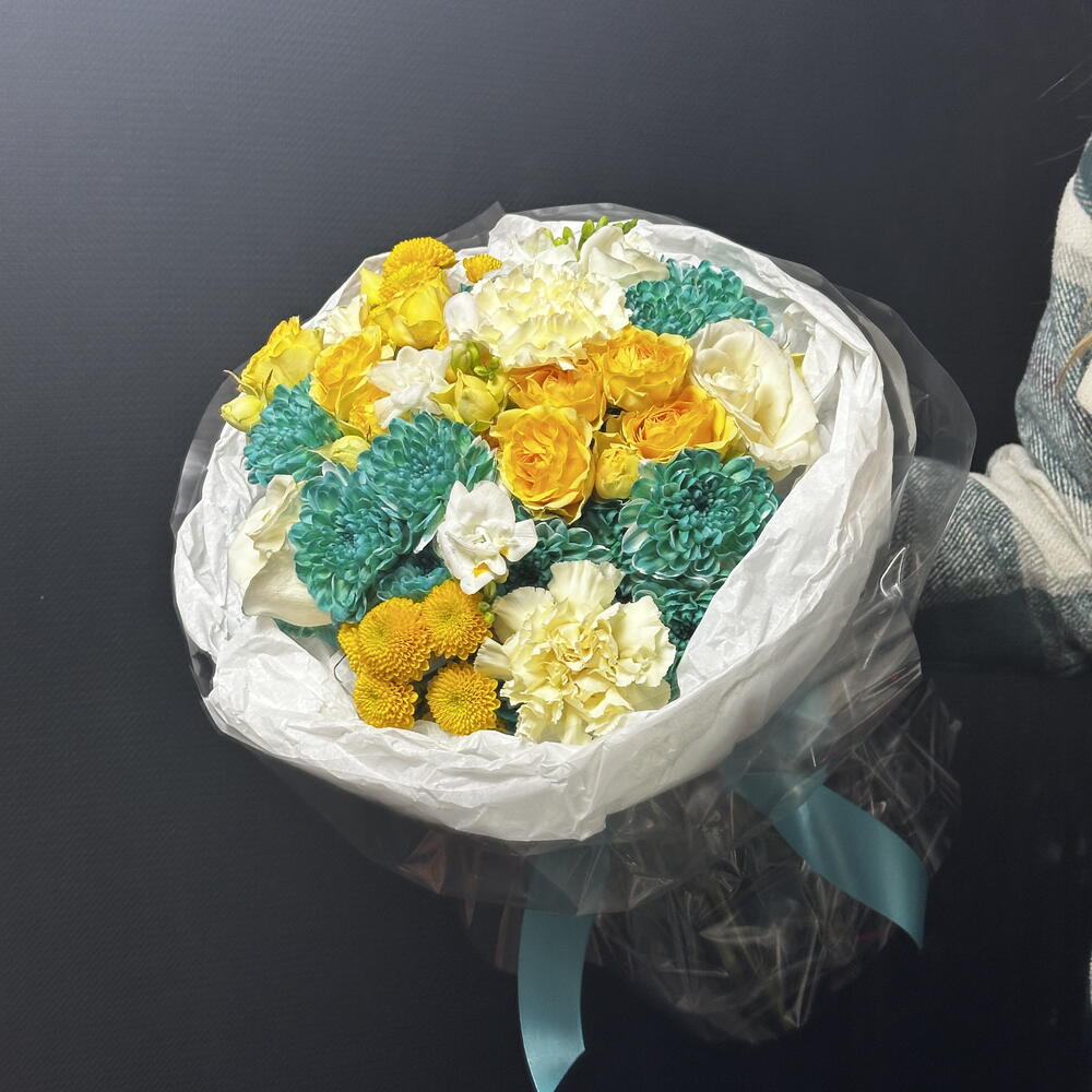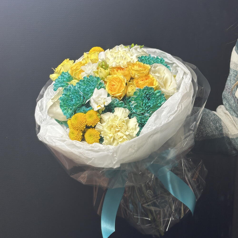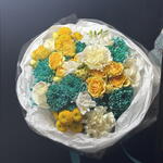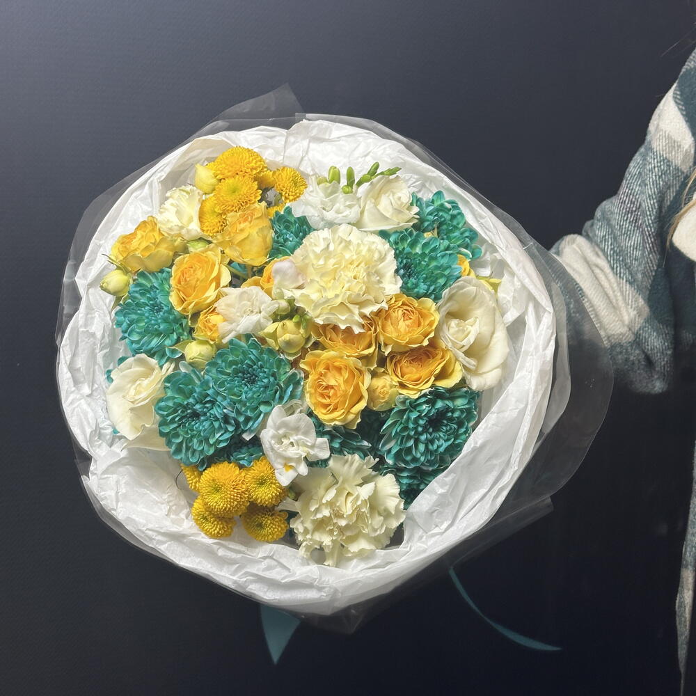 Azúrkék – a fény és a gyengédség csokorja. Az élénk türkiz krizantémok, a napsárga rózsák és a lágy krémszínek a frissesség és a melegség harmonikus keverékét alkotják. Könnyed és inspiráló, mosolyt és gondoskodást hoz az arcokra, stílusos kiegészítője lehet bármilyen alkalomnak. Kinek való azúrkék: • Azoknak, akik szeretik a szokatlan, élénk árnyalatokat és a friss virágkombinációkat • Nőknek és lányoknak, akik értékelik a könnyedség, a gondoskodás és a figyelem ajándékát • Kollégáknak és barátoknak – stílusos és diszkrét hálajellegként • Szeretteknek születésnapokra, ünnepségekre, vagy egyszerűen csak „hogy feldobják a napjukat” • Azoknak, akik értékelik a modern virágkötészetet és a ragyogó, mégis harmonikus kompozíciókat Azúrkék egy sokoldalú és szívből jövő ajándék, amely szinte bármilyen alkalomra és címzett számára tökéletes.