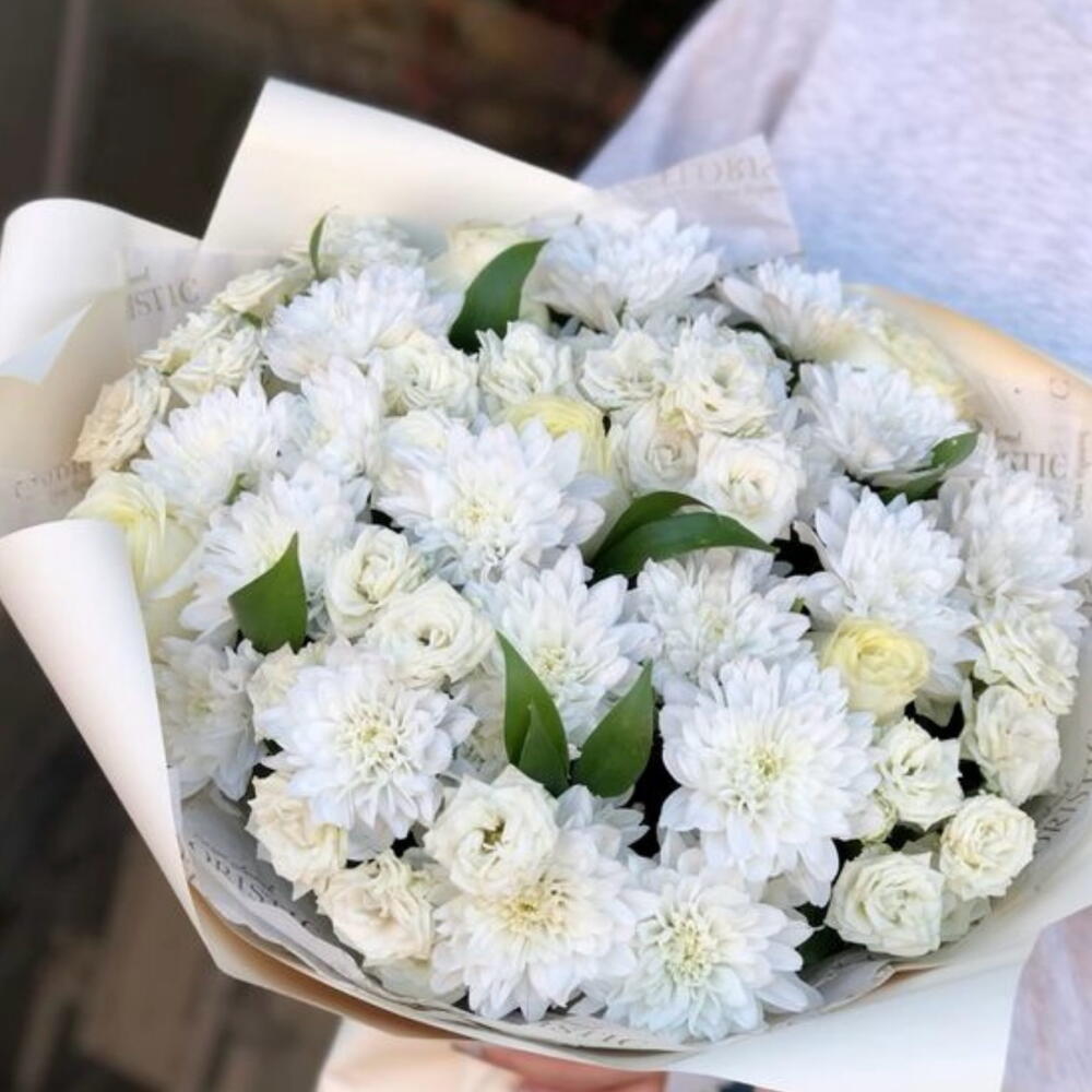 santini krizantémok - 5 db. spray rózsa - 10 db. dekoratív papír - 5 db.