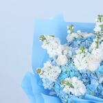 Fehér rózsa - 10 db. white mathiola - 10 db. kék hortenzia - 5 db.