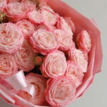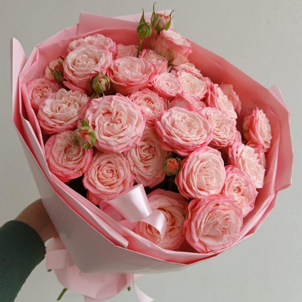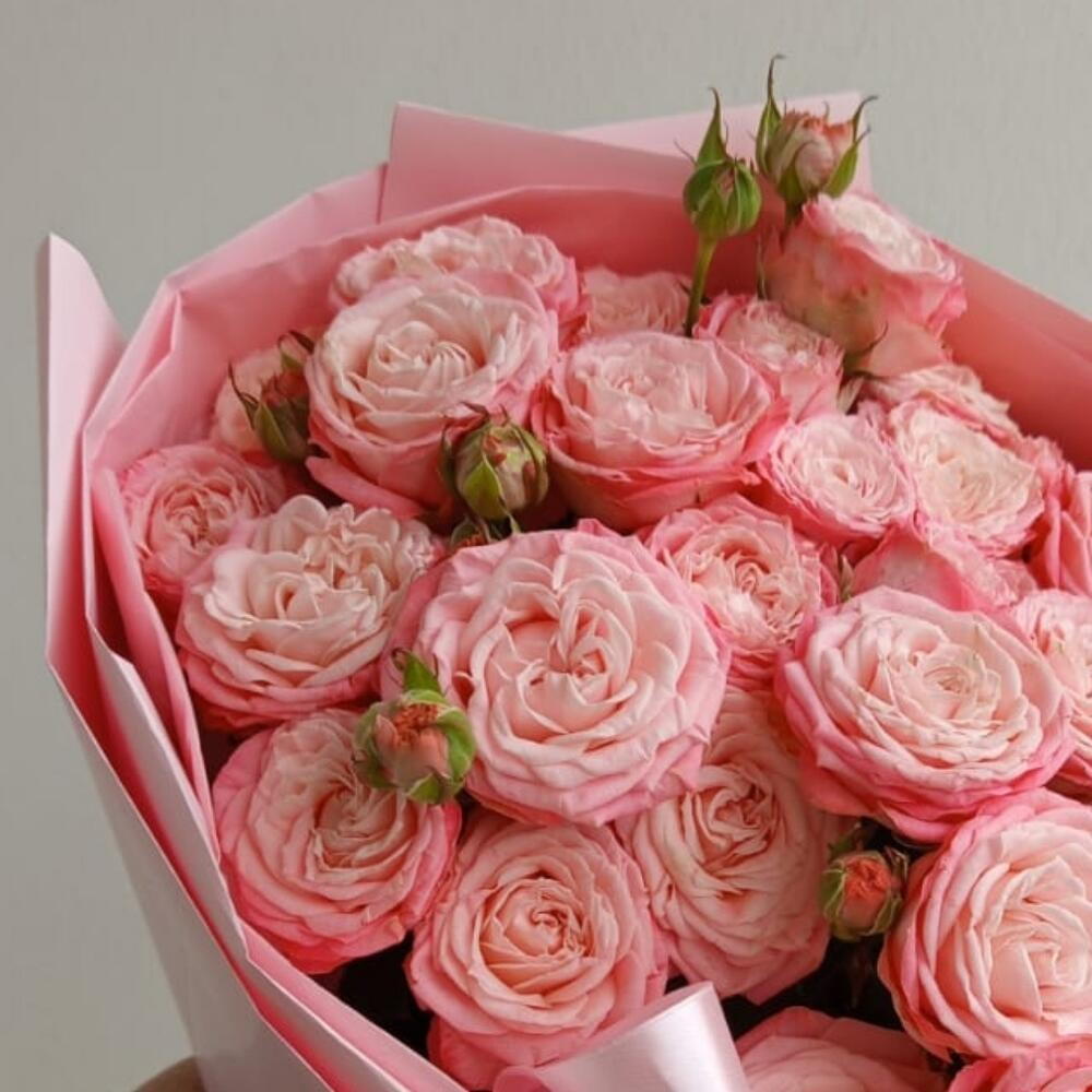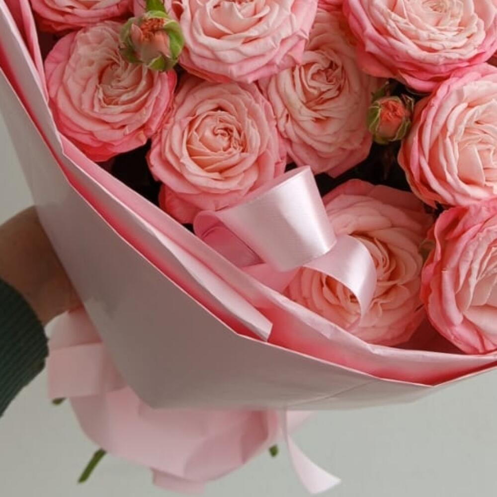 Воздух наполненный ароматом цветов и солнечным светом — именно такие чувства вызывает эта нежная композиция из кустовых роз. Нежная упаковка словно подчеркивает легкость и свежесть композиции, а веточки кустовой розы добавляют живости и природной свободы. Это история про теплое утро, лёгкий ветер и улыбку без повода. Подарите её тем, кого хочется согреть летом - даже в самый будний день. Красивый букет из пионовидных кустовых роз в стильно оформлении. Этот букет подойдет для твоей любимой мамы