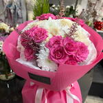 rózsa - 4 db. krizantém - 3 db. virágkiegészítők - 3 db. goląskowa rózsa - 4 db.
