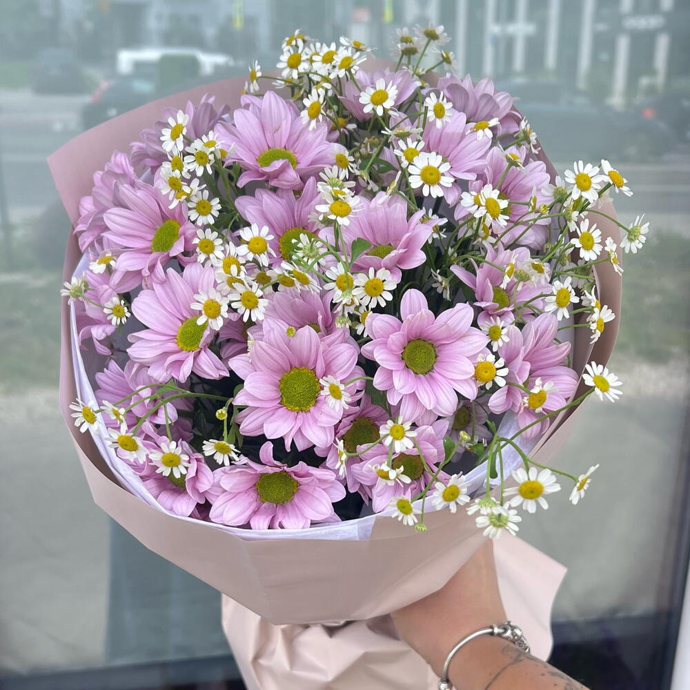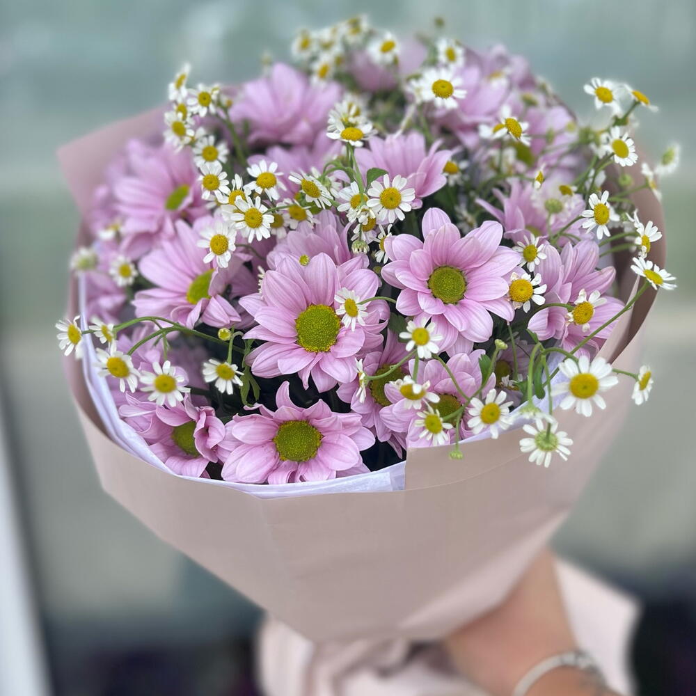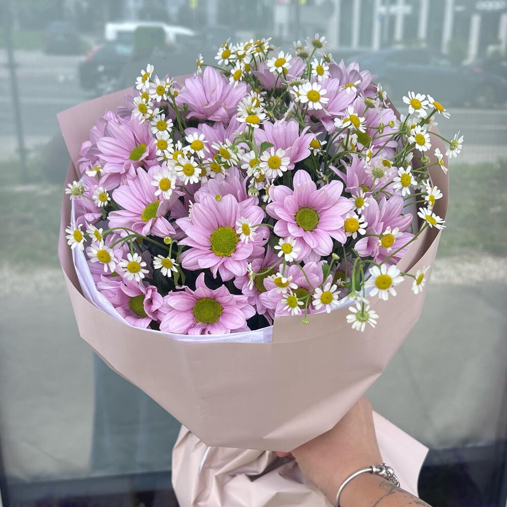 százszorszép - 6 db. rózsaszín krizantém - 3 db.