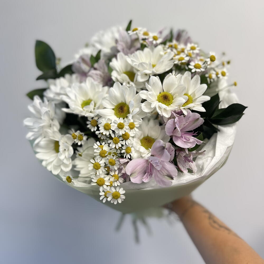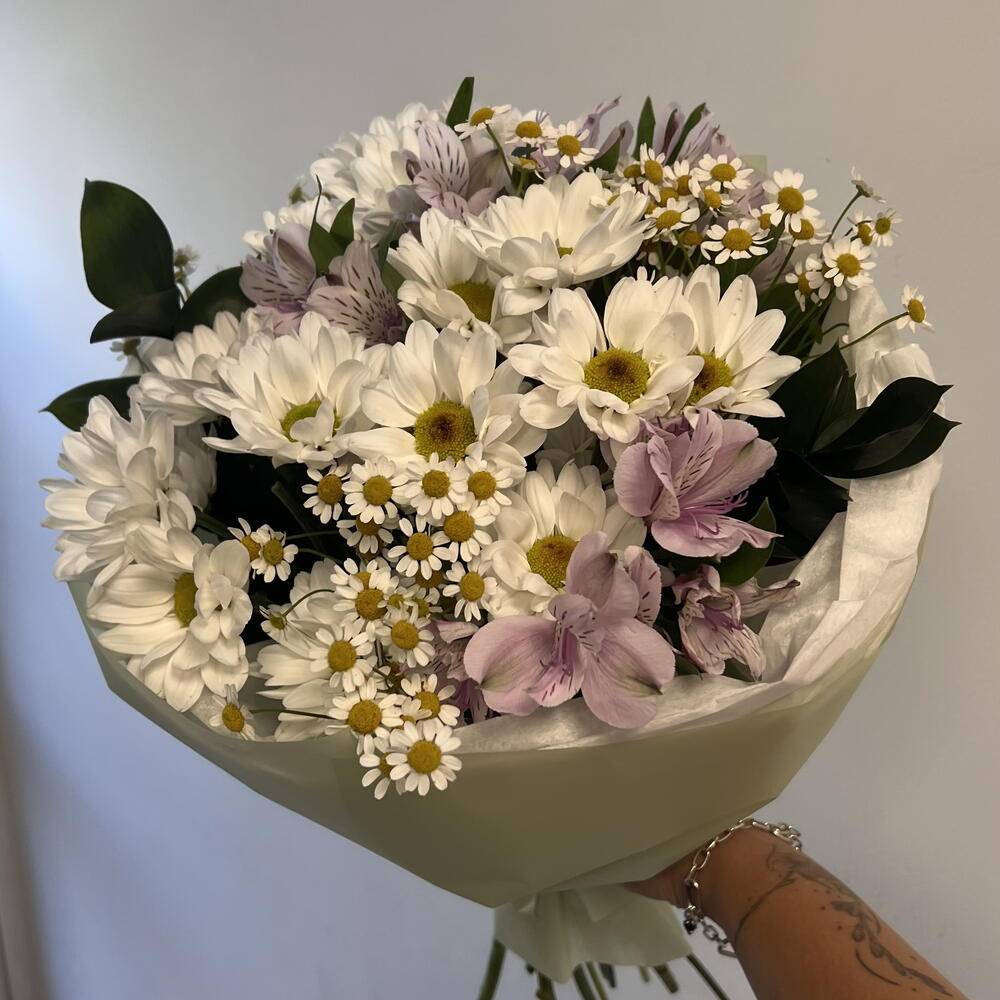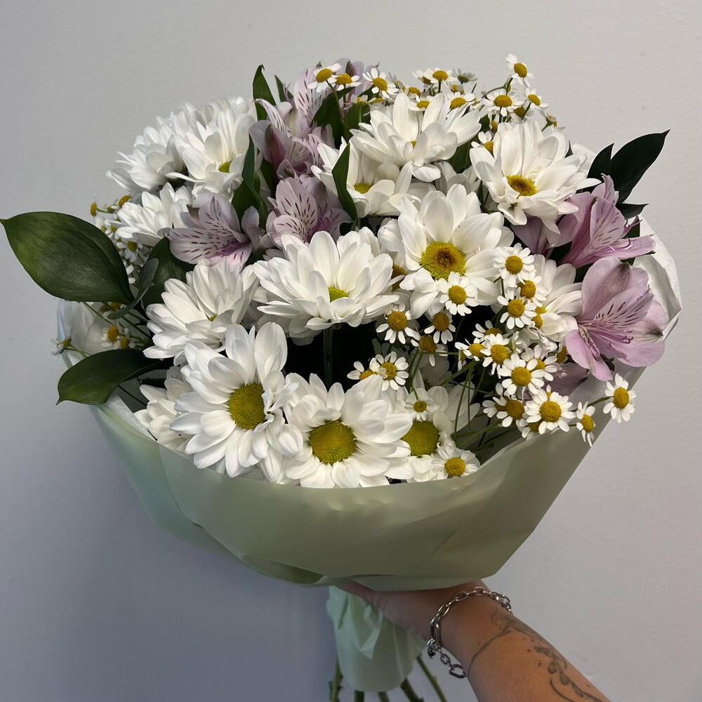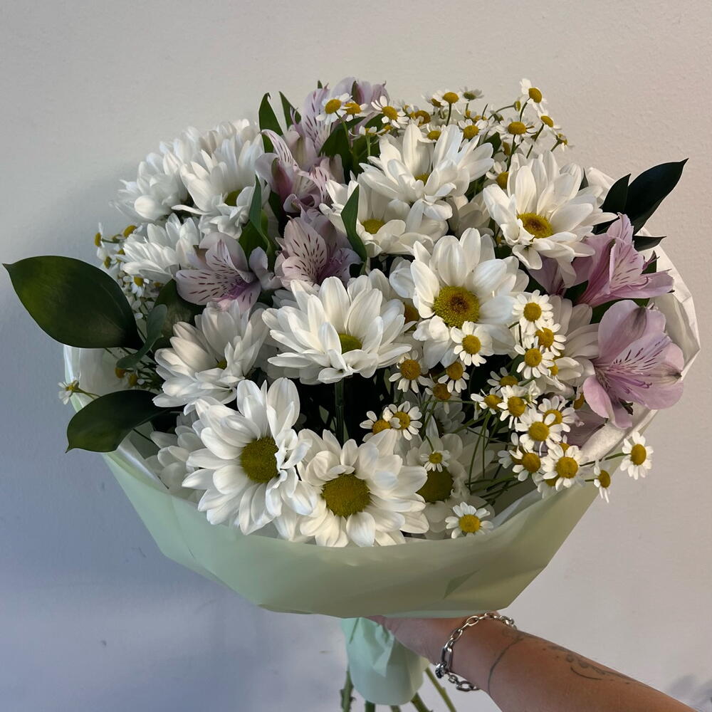 Csodabogyó - 2 db. százszorszép - 3 db. alstroemeria - 3 db. chrysanthema biał - 3 db.
