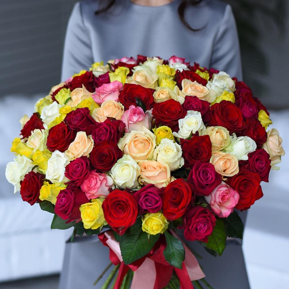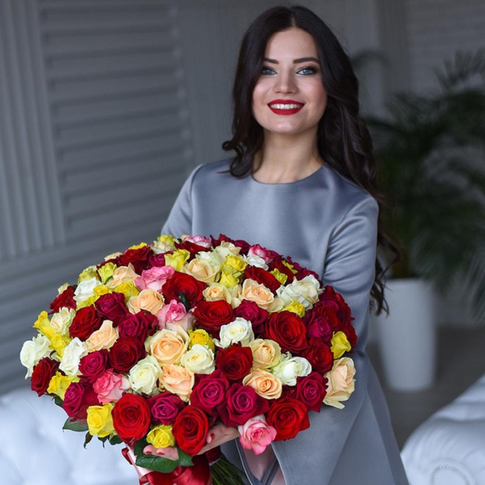 A beautiful bouquet of multicolored roses. Sunny, rainbow bouquet will bring a wonderful mood to your loved ones! Bouquet of 35 red roses combines wonderful bright colors of fresh flowers, stylish and chic. The emphasis of this bouquet will not leave anyone indifferent from others! E. This bouquet is appropriate to give on any occasion, as a sign of attention or a Declaration of love. Rose petals in this bouquet reminiscent of the colorful wings of butterflies, which tend to warm sun rays! Give great emotions to your loved ones.