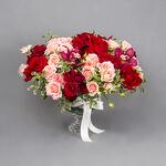 Букет красивый, соответствует фото. Но сервис доставки просто ужасный. В приложении было указано, что цветы доставят в 14:00-14:30. Но в итоге уже 17:21, а цветов всё ещё нет. Пару часов назад магазин ответил, что доставит букет через полчаса. Не доставили. Несмотря на то что цветы так и не были доставлены, магазин закрыл заказ в приложении. Спустя нескольких часов переписок и долгой доставки заказ всё же доставили. Но сервисом осталась недовольна.