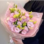 Облачко пушистой, нежной махровой Эустомы. Красивые, розовые бутоны лизиантусов доставят самые приятные, нежные эмоции получателю. Стойкие соцветия продлят эти эмоции.
