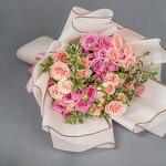 Букет красивый, соответствует фото. Но сервис доставки просто ужасный. В приложении было указано, что цветы доставят в 14:00-14:30. Но в итоге уже 17:21, а цветов всё ещё нет. Пару часов назад магазин ответил, что доставит букет через полчаса. Не доставили. Несмотря на то что цветы так и не были доставлены, магазин закрыл заказ в приложении. Спустя нескольких часов переписок и долгой доставки заказ всё же доставили. Но сервисом осталась недовольна.