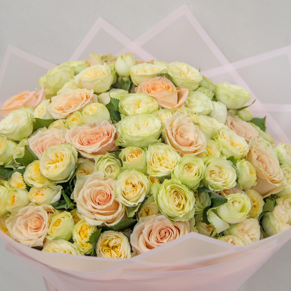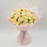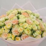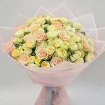 Букет красивый, соответствует фото. Но сервис доставки просто ужасный. В приложении было указано, что цветы доставят в 14:00-14:30. Но в итоге уже 17:21, а цветов всё ещё нет. Пару часов назад магазин ответил, что доставит букет через полчаса. Не доставили. Несмотря на то что цветы так и не были доставлены, магазин закрыл заказ в приложении. Спустя нескольких часов переписок и долгой доставки заказ всё же доставили. Но сервисом осталась недовольна.
