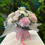 Unfortunately, the bouquet we received was significantly smaller than the one shown in the photo at the time of ordering. Several flowers that were visible in the product image were missing. The bouquet had an approximate diameter of about 30 cm, whereas the bouquet in the description and photo appeared to be around 45 cm in diameter.