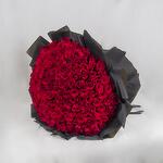 A round bouquet with 200 red Roses with black wrapping paper.