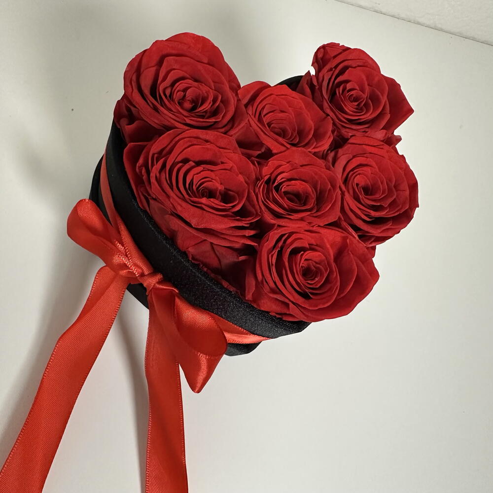 tartósított rózsa - 7 db. szív alakú doboz - 1 db.