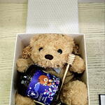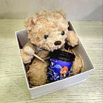 miś ubrany w sweterek - 1 db. miód z jagodą miodziś 430 g - 1 db. łyzeczka do miodu - 1 db. pudelko z dekoracyjną trawą - 1 db.