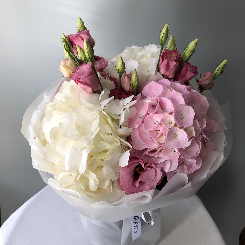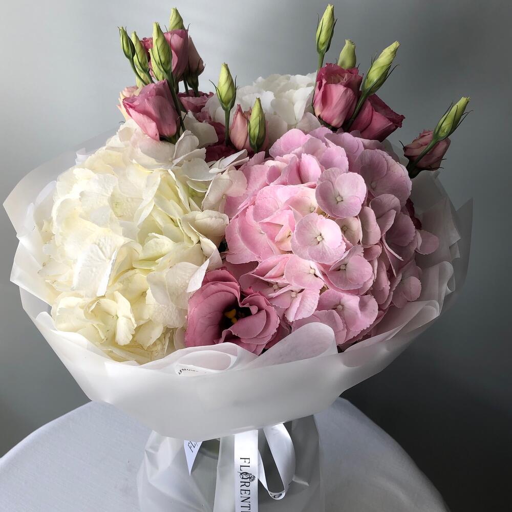 Mix of hortensias and lisiantuses