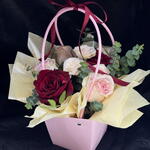 eukaliptusz - 1 db. Spray rózsa - 1 db. rózsa - 5 db. csomagolópapír - 1 db. bag - 1 db.