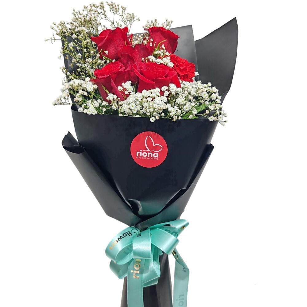 Piros rózsa - 6 db. Gypsophila - 4 db.
