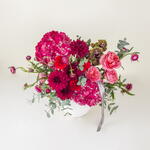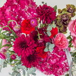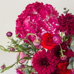 The bold and contrasting colors, ranging from deep reds to vibrant pinks, make this centerpiece a focal point for any room or event.