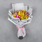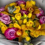Букет красивый, соответствует фото. Но сервис доставки просто ужасный. В приложении было указано, что цветы доставят в 14:00-14:30. Но в итоге уже 17:21, а цветов всё ещё нет. Пару часов назад магазин ответил, что доставит букет через полчаса. Не доставили. Несмотря на то что цветы так и не были доставлены, магазин закрыл заказ в приложении. Спустя нескольких часов переписок и долгой доставки заказ всё же доставили. Но сервисом осталась недовольна.