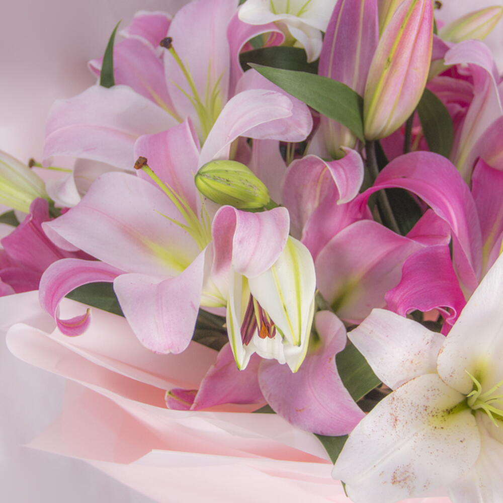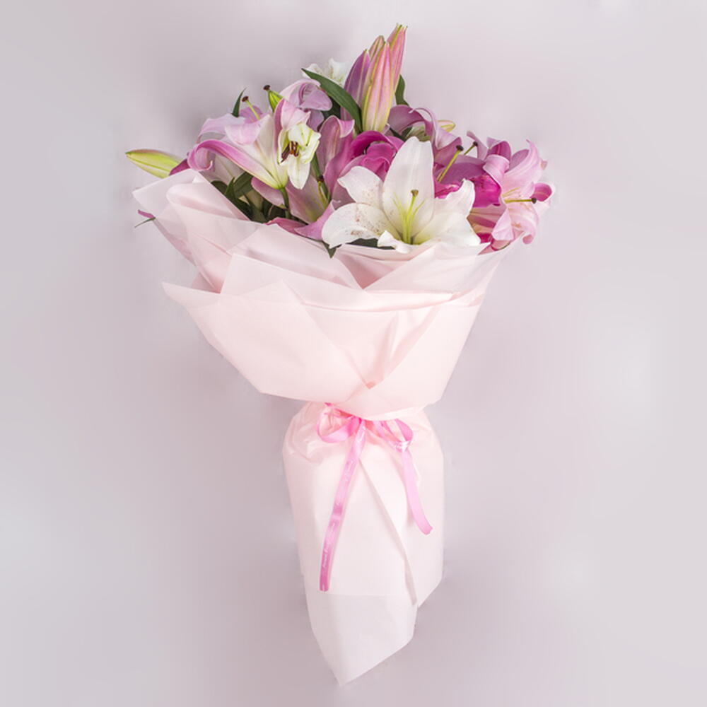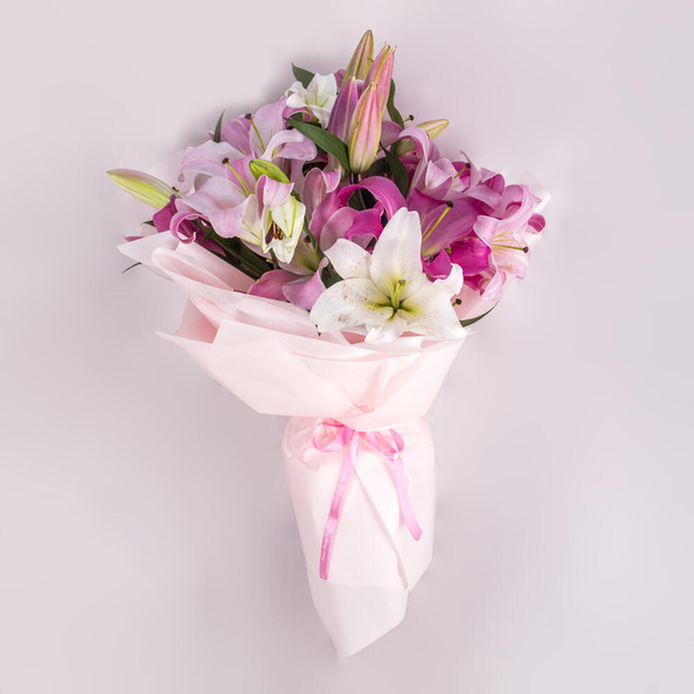 Brighten someones day with this fresh and vibrant bouquet of pink and white lilies. A perfect pick-me-up that will bring joy and happiness.