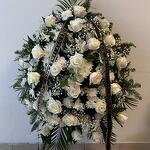santini - 5 db. szegfű - 12 db. krizantém - 5 db. alstroemeria - 10 db. vágott zöldek - 20 db. gipszes - 5 db. Play Blanca rózsa - 24 db.