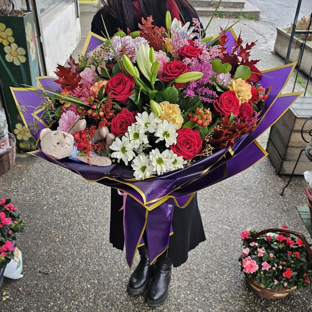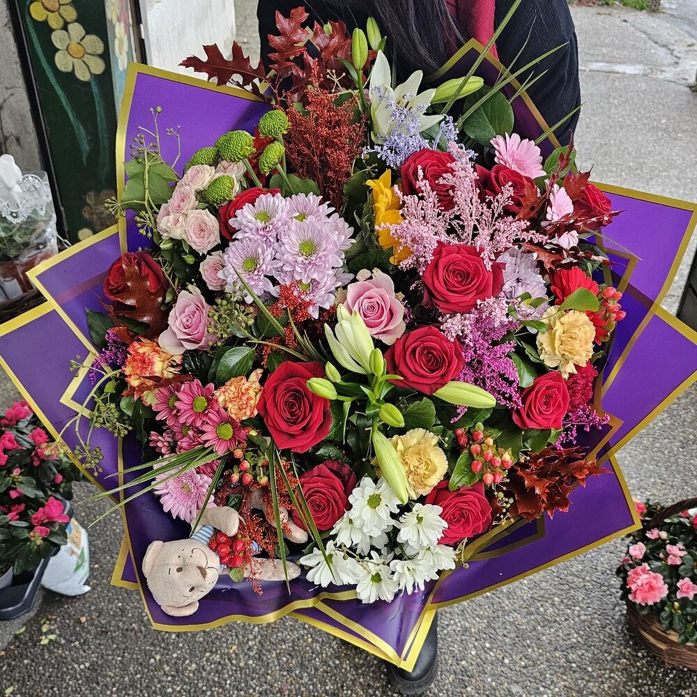 Bouquet is made of available flowers, some may be changed with similar one, depending on season