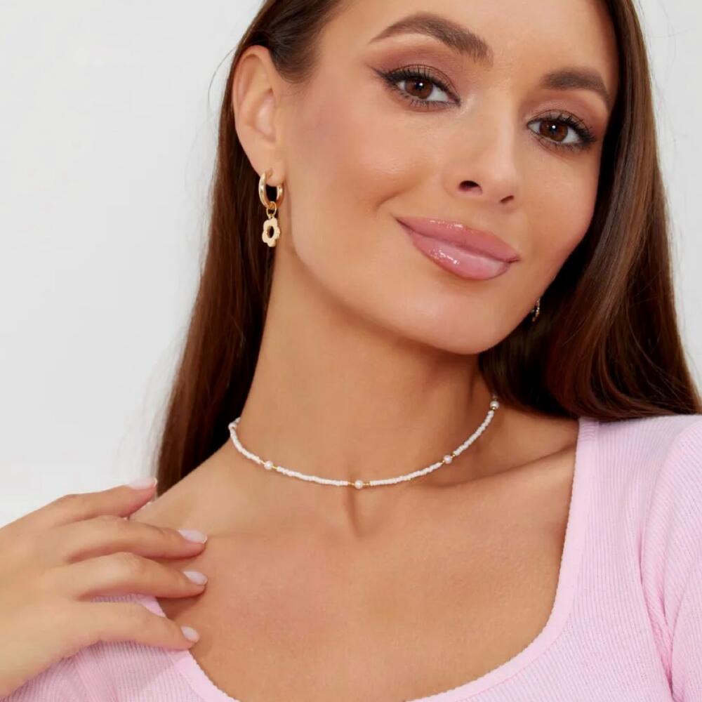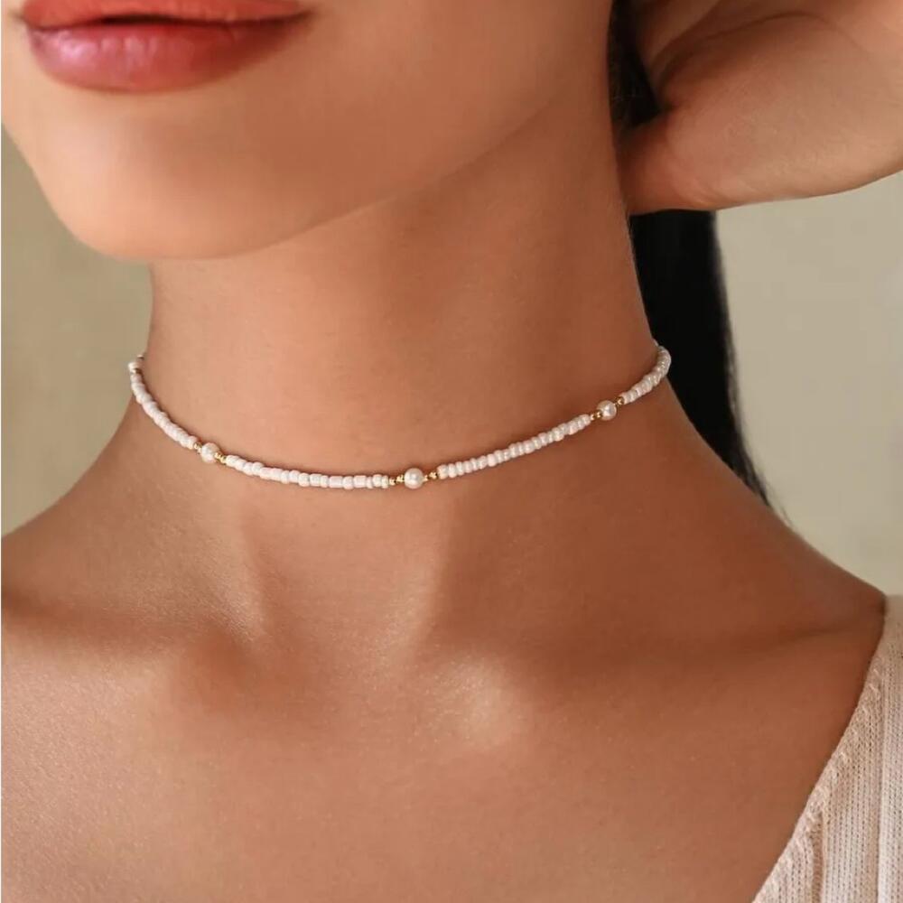 Handcrafted choker made of Czech beads and artificial pearls with a high-quality stainless steel clasp.