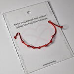 A simple yet meaningful bracelet made with vibrant red cord and delicate knots, symbolizing protection and good fortune. Adjustable to fit comfortably, this handmade piece is perfect as a thoughtful gift or a personal talisman.