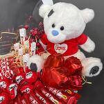 Композиция с мягкой игрушкой, шарами и сладостями