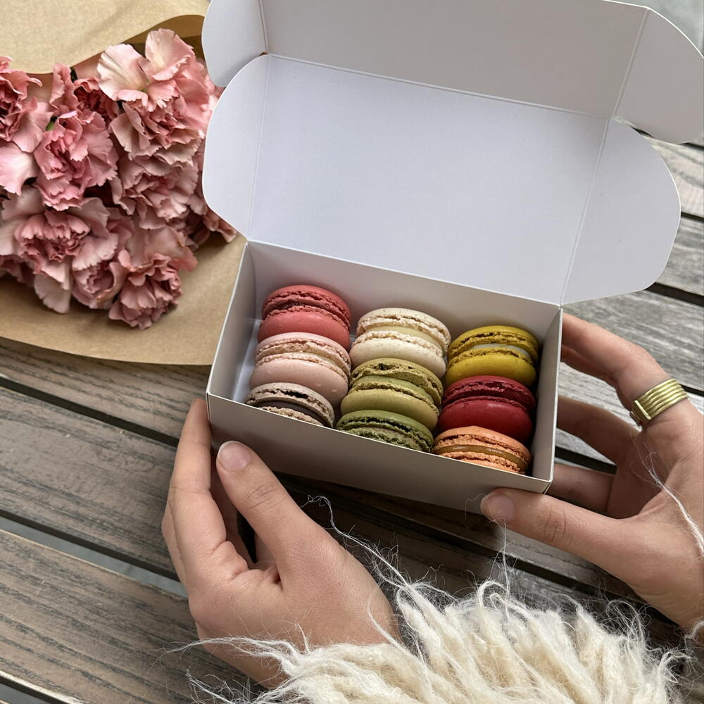 The perfect addition to any bouquet - a box of macarons. This delicious treat won’t leave anyone indifferent and adds a sweet touch to any occasion!