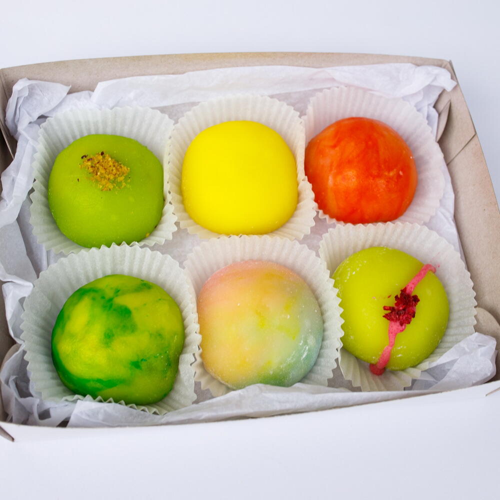 Mochi is a Japanese dessert made from rice flour and filled with a variety of fillings. Gluten-free. New Years mochi set of 6.