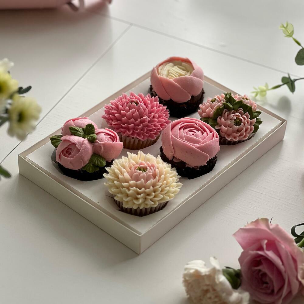 Yerevan Cakes — набор «Цветочный микс» Праздничный бокс с капкейками, украшенными реалистичными кремовыми цветами ручной работы: — мини-пионы, мини-хризантемы, — пион, хризантема (2 шт.), — пионовидная роза. Начинки капкейков: Ванильная, Шоколадная, Фисташковая, Сникерс, Лимонная, Ягодная, Красный бархат, Рафаэлло, Вишневая Крем: на основе творожного сыра — отлично держит форму и напоминает лёгкий чизкейк. Без пальмовых масел и ГМО, только отборные ингредиенты и ручная работа. Упаковка: фирменная коробка с лентой — готовый подарок. Хранение: в холодильнике при +2…+6 °C до 72 часов. При комнатной температуре цветы сохраняют форму, но держите не дольше 2–3 часов. Добавьте пожелания по вкусу/надписи при оформлении заказа.