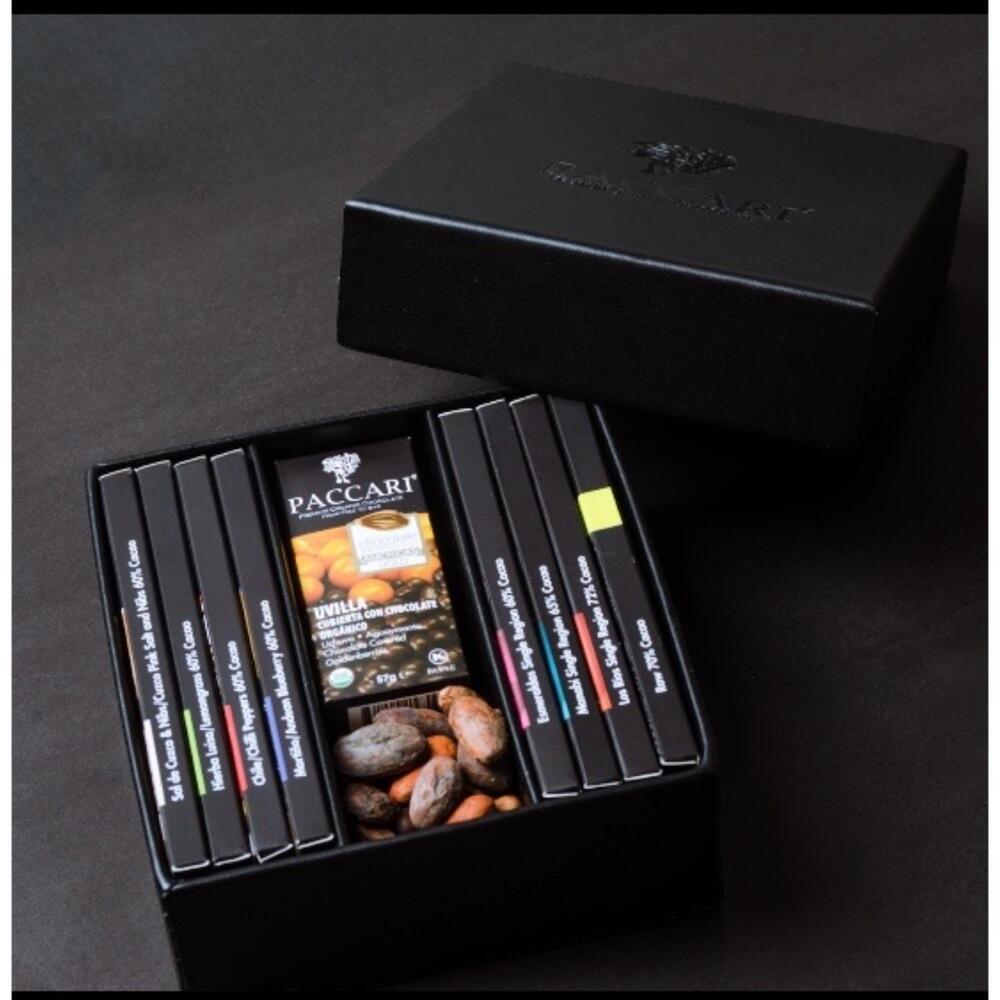 * Award winning Pacari 100% Organic Premium Chocolate bars. Soy free, Gluten free, Chemicals free. Vegan. Enjoy the unforgettable chocolate experience. Packaging: 10 bars. Laurel wood gift box with 8 bio raw chocolate bars and 2 chocolate covered fruits.