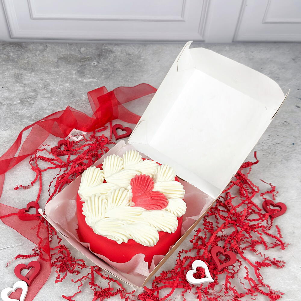 ❤️ Love Collection ❤️ Red Velvet Bento Cake – a classic red velvet cake with a light cream cheese frosting. The cake weighs around 500 g – small yet indulgent, perfect as a gift or for sweet enjoyment for two. Designed in a Love theme. 📌 Important: The cake is delivered frozen and requires at least 3 hours to thaw before consumption. We recommend ordering in advance.