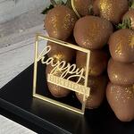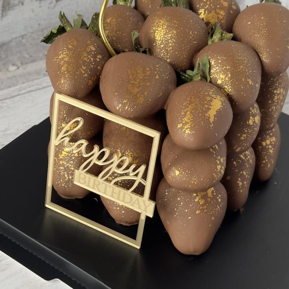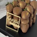 Truskawki w czekoladzie, topper „Happy Birthday”, świeczka