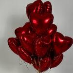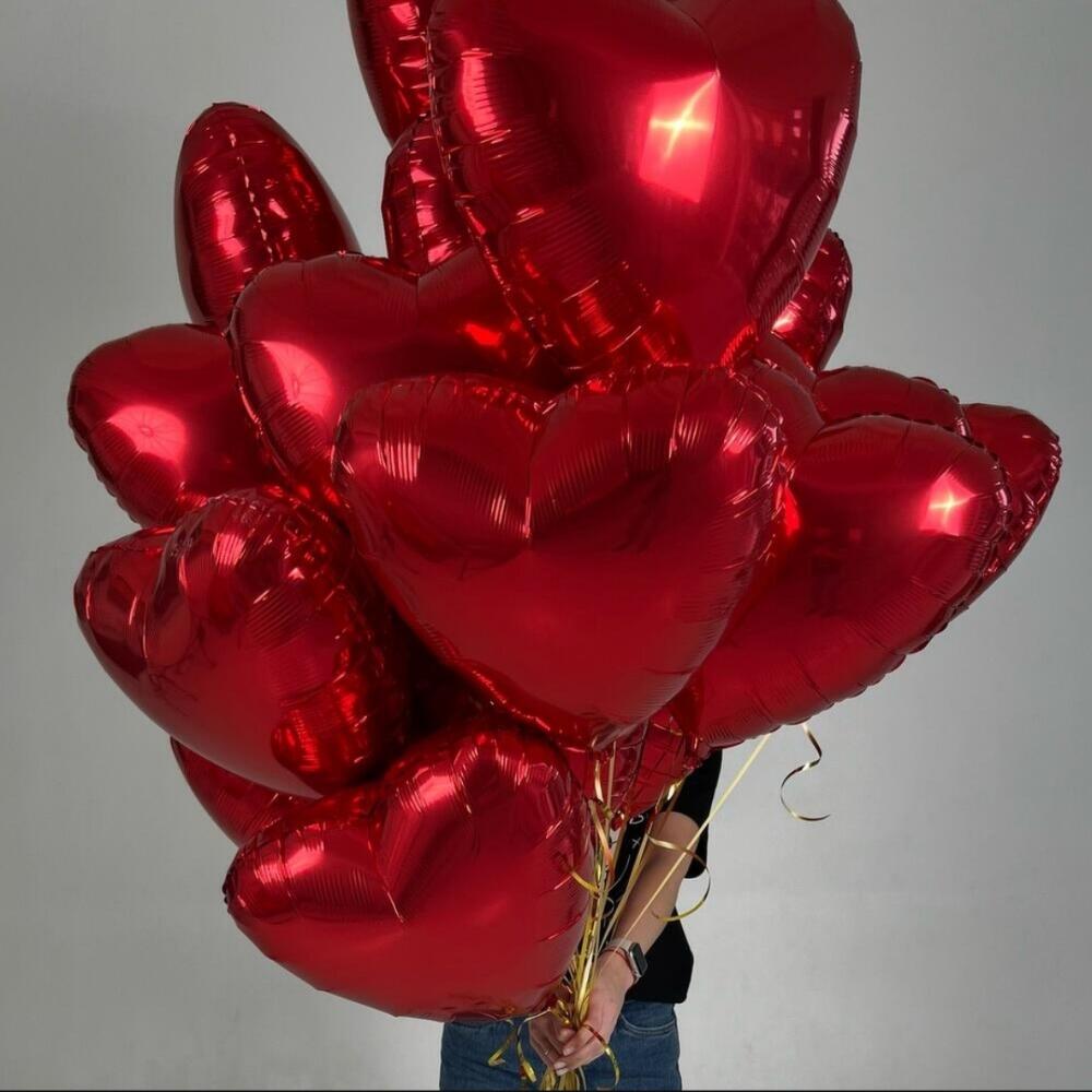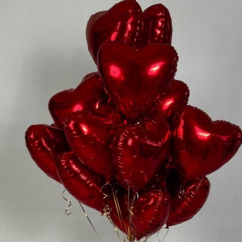 Фольгированное сердце 18 дюймов (46см). Количество 15 штук. Наполнение представлено гелий. Вы можете распустить их под потолок или привязать композицию к предметам интерьера.