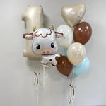 Zestaw na ROCZEK z KRÓWKĄ W skład zestawu wchodzi: 🤎Cyfra metrowa 1 z helem na obciążniku 🤍Figura Krówka z helem na obciążniku 🤎Zestaw z 7 balonów dopasowanych kolorystycznie: 1 serduszko foliowe 2 balony lateksowe błękitne 2 balony lateksowe brązowe 1 balon lateksowy beżowy 1 balon lateksowy biały