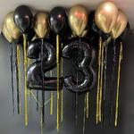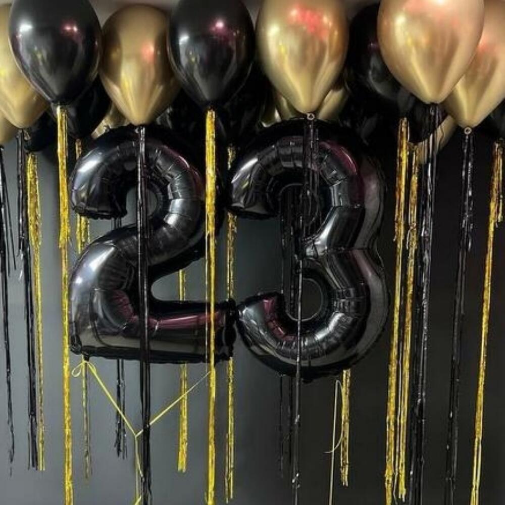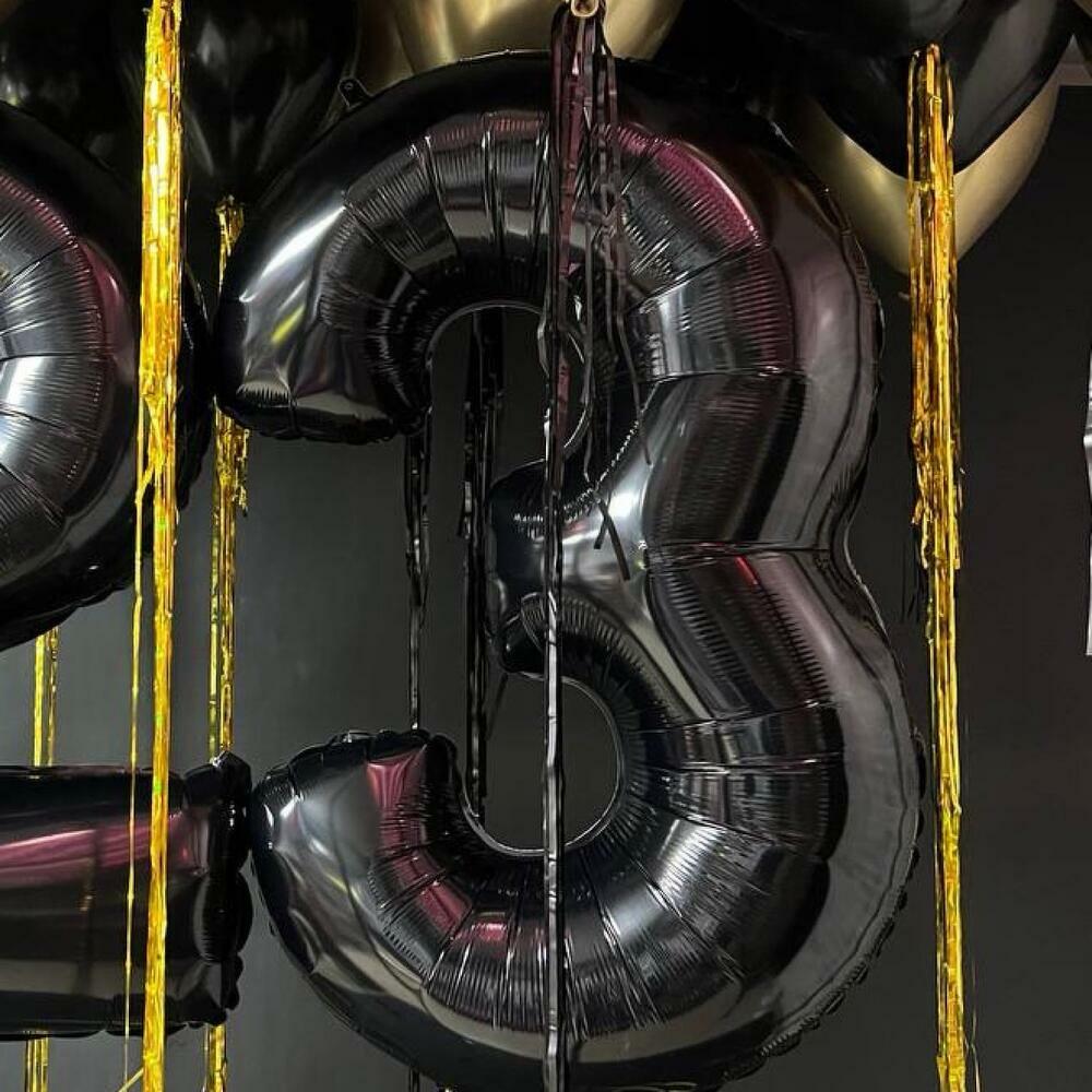 Цифры черные - 2шт ❗️В комментарии к заказуи в чате укажите, какие цифры нужны❗️ - шар черный с дождиком - 10шт - шар золото хром с дождиком - 10шт
