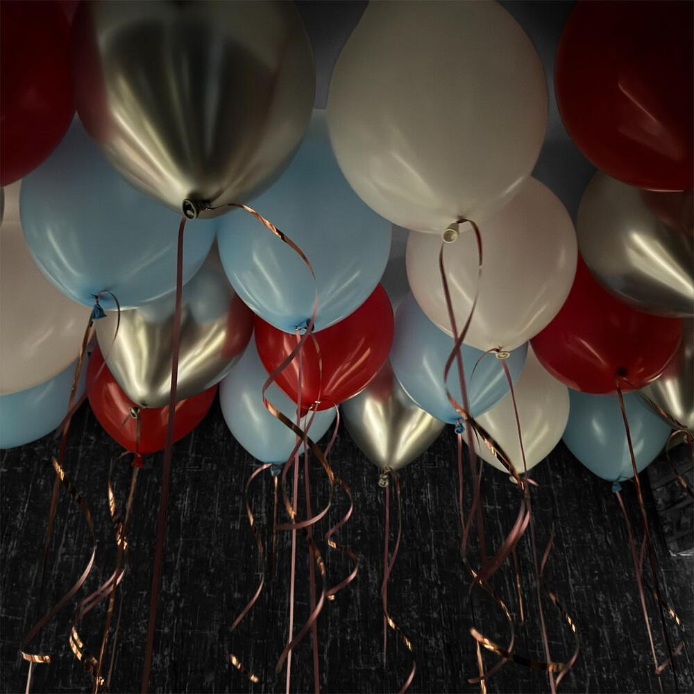 Стильные шары на Ваш праздник в сочетании красного, голубого, белого и серебряного цветов. Отлично подойдет на праздник, как взрослого, так и ребенка. Все шары обработаны специальной жидкостью для увеличения срока полета от 3-х дней и более.