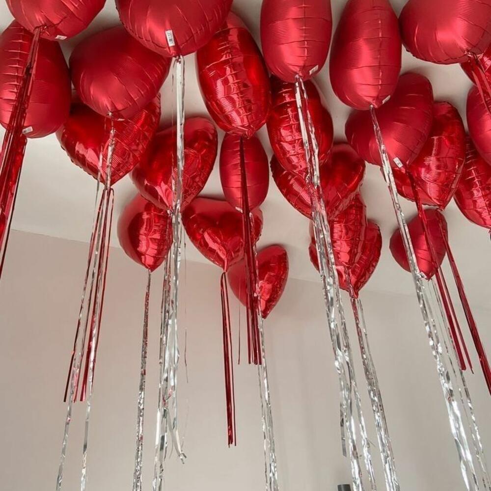 Воздушные шары под потолок, шарики с гелием под потолком в стиле Pinterest, фольгированные сердца 23 шт с дождиком