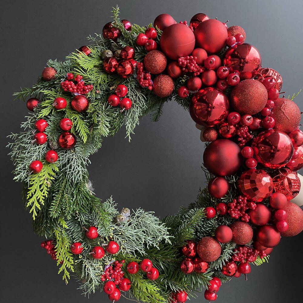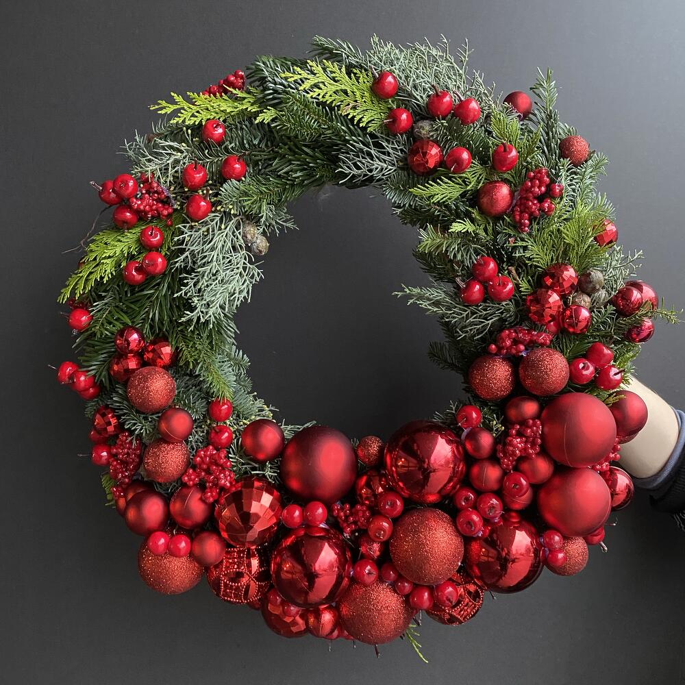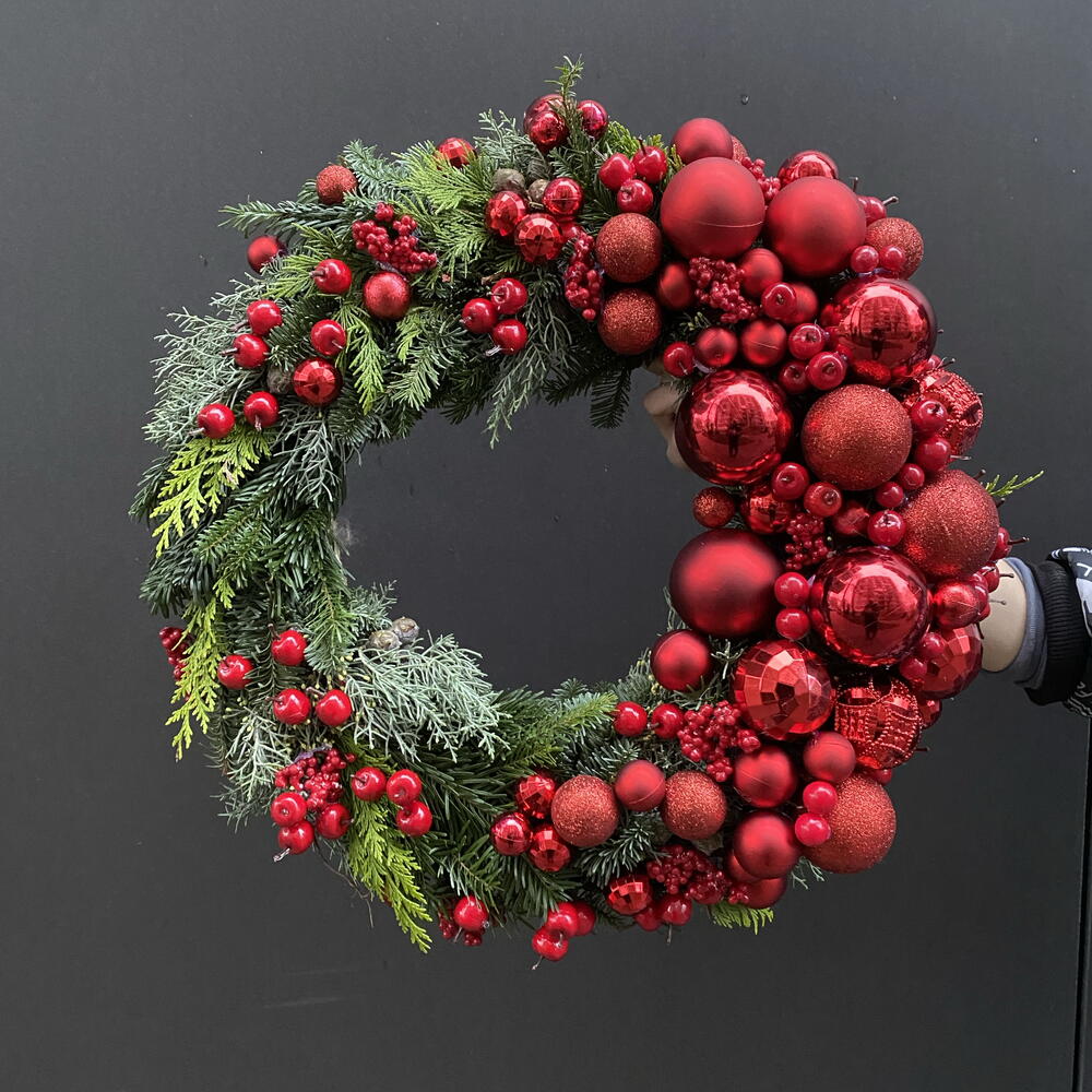 Wieniec noworoczny jest idealny do dekoracji. składa się z żywych gałązek świerku, które dodają aromatu i przepięknych czerwonych kulek. Uwaga! W przypadku, gdy klient nie odbiera telefonu w celu uzgodnienia bukietu, jego skład może zostać zmieniony na kwiaty dostępne w magazynie, ale styl i kolor pozostaną takie same.